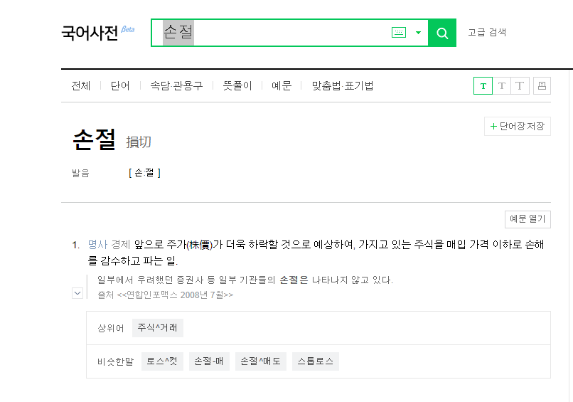 주식하는 사람들은 또 많이 이용할 용어 중 하나손절입니다.