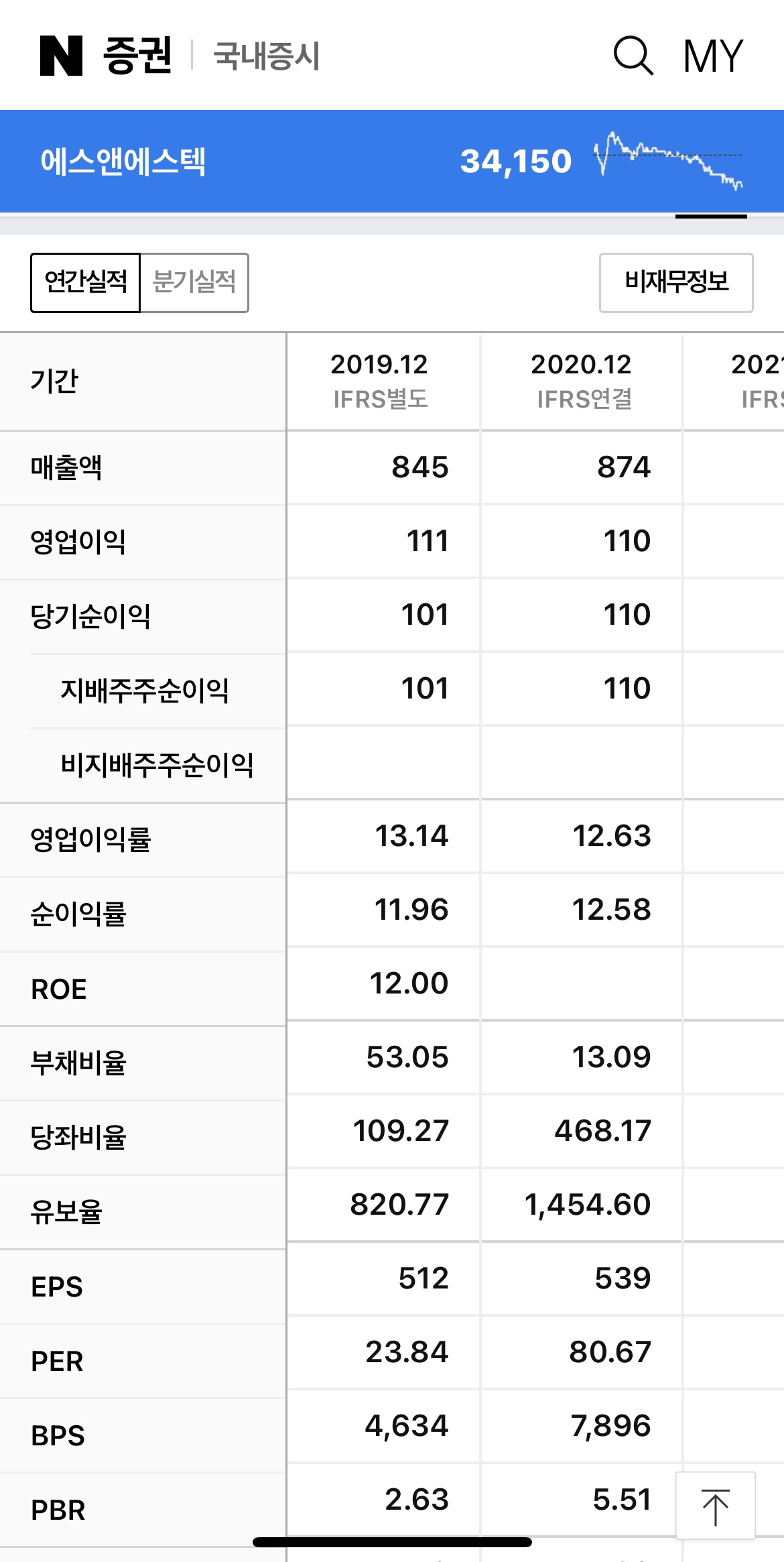 에스앤에스텍 실적 및 매출