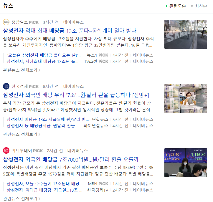 삼성전자 배당금이 최대 13조가 풀렸습니다.