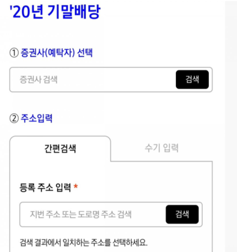 배당기준일 기준 등록된 주소지를 입력합니다.