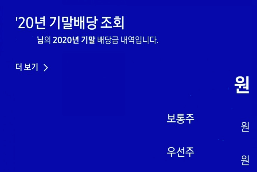 조회대상 삼성전자 배당금은 `20년 기말배당이며 배당기준일은 `20년 12월 말일입니다.