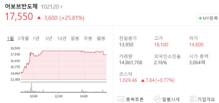 어보브반도체 주가 급등