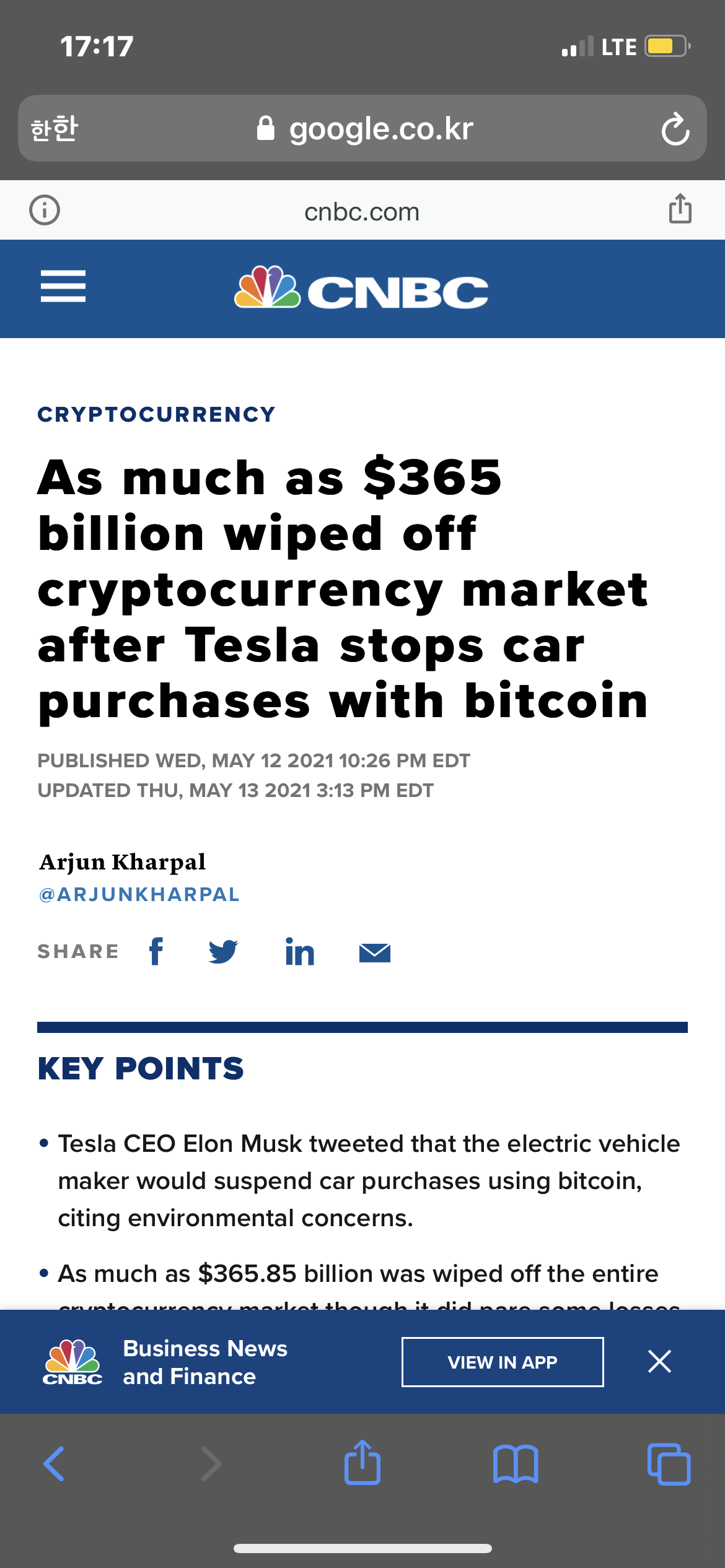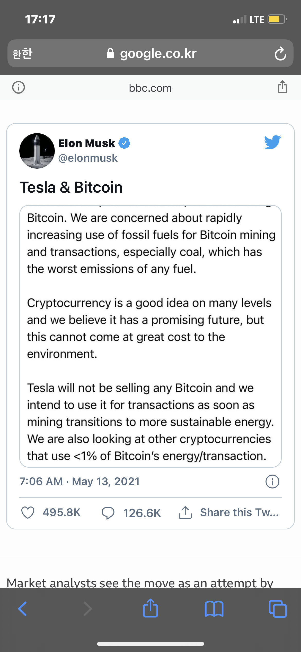 비트코인이 하락한 배경에는 테슬라의 CEO인 일론머스크가 있습니다.