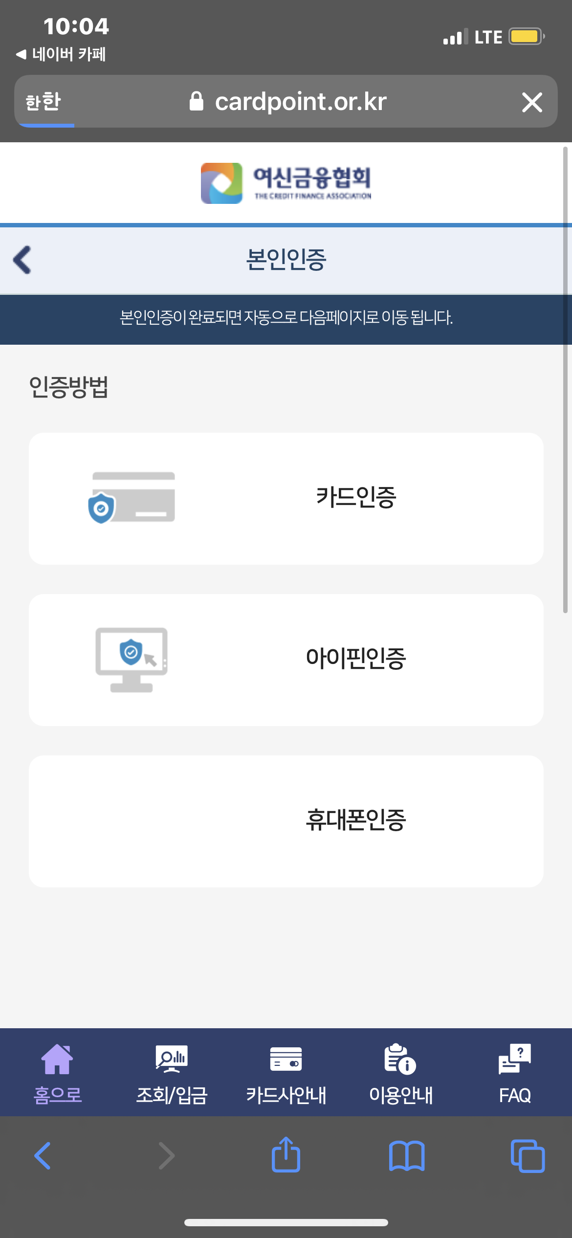 휴대폰 인증이 가장 편리합니다.