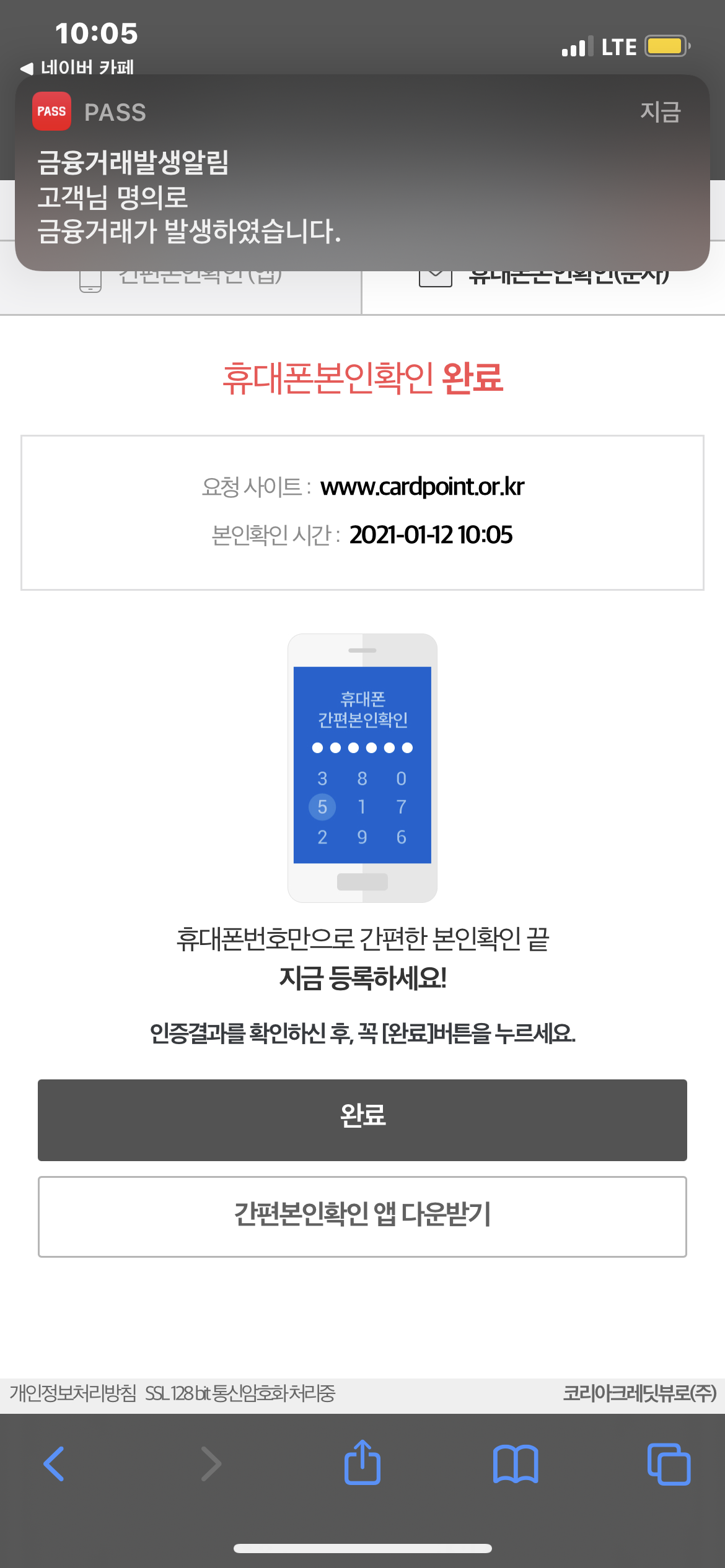 인증 완료했습니다.