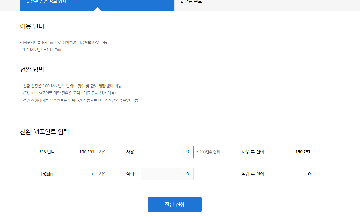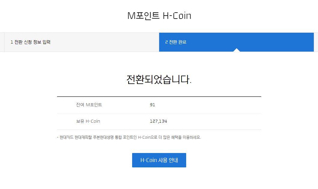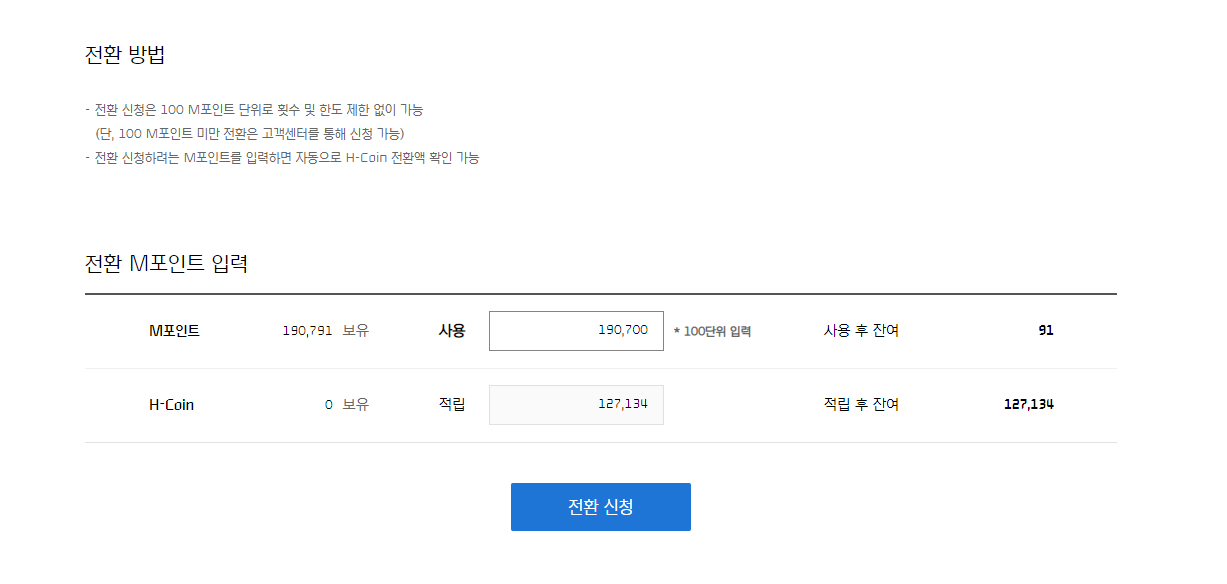 M포인트를 h-coin으로 바꾸기