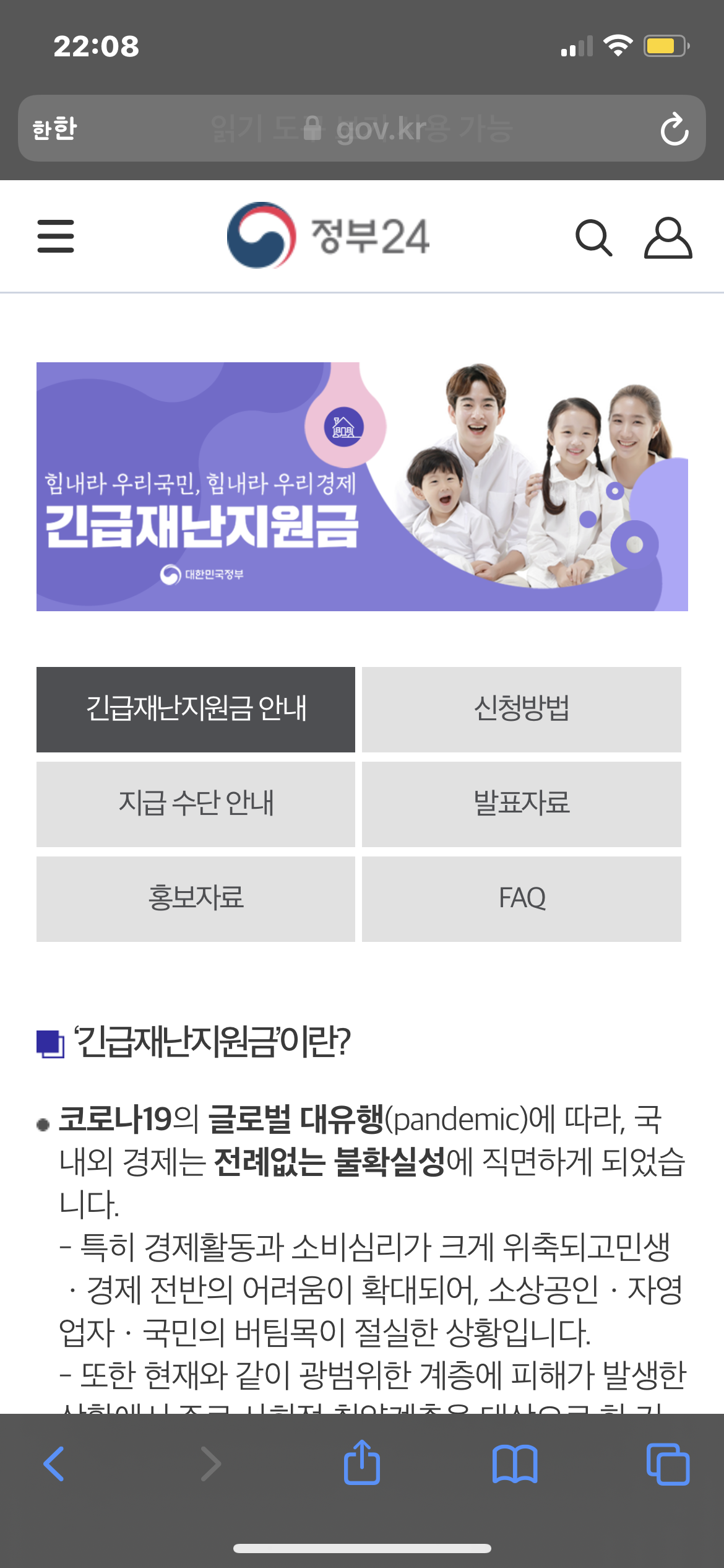 전국민 대상 1인가구 기준 40만원을 지급했는데