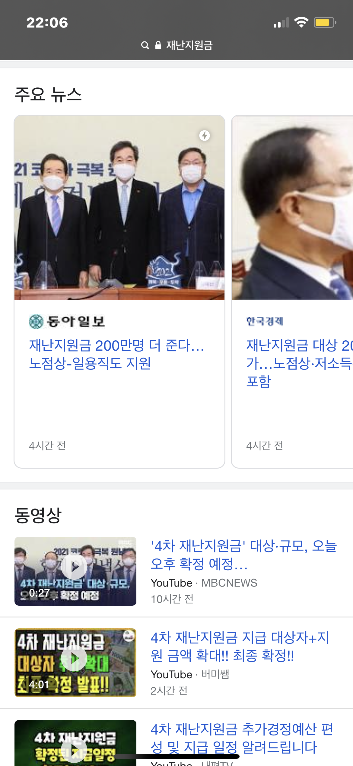 정세균 국무총리가 직접 "추가경정 예산을 통해 4차 재난지원금과 긴급고용대책을 준비하고 있으며, 지난 재난지원금보다 지원대상과 금액을 확대하여 사각지대 없이 많은 분들께 도움을 드리고자 한다."고 밝히기도 했습니다.
