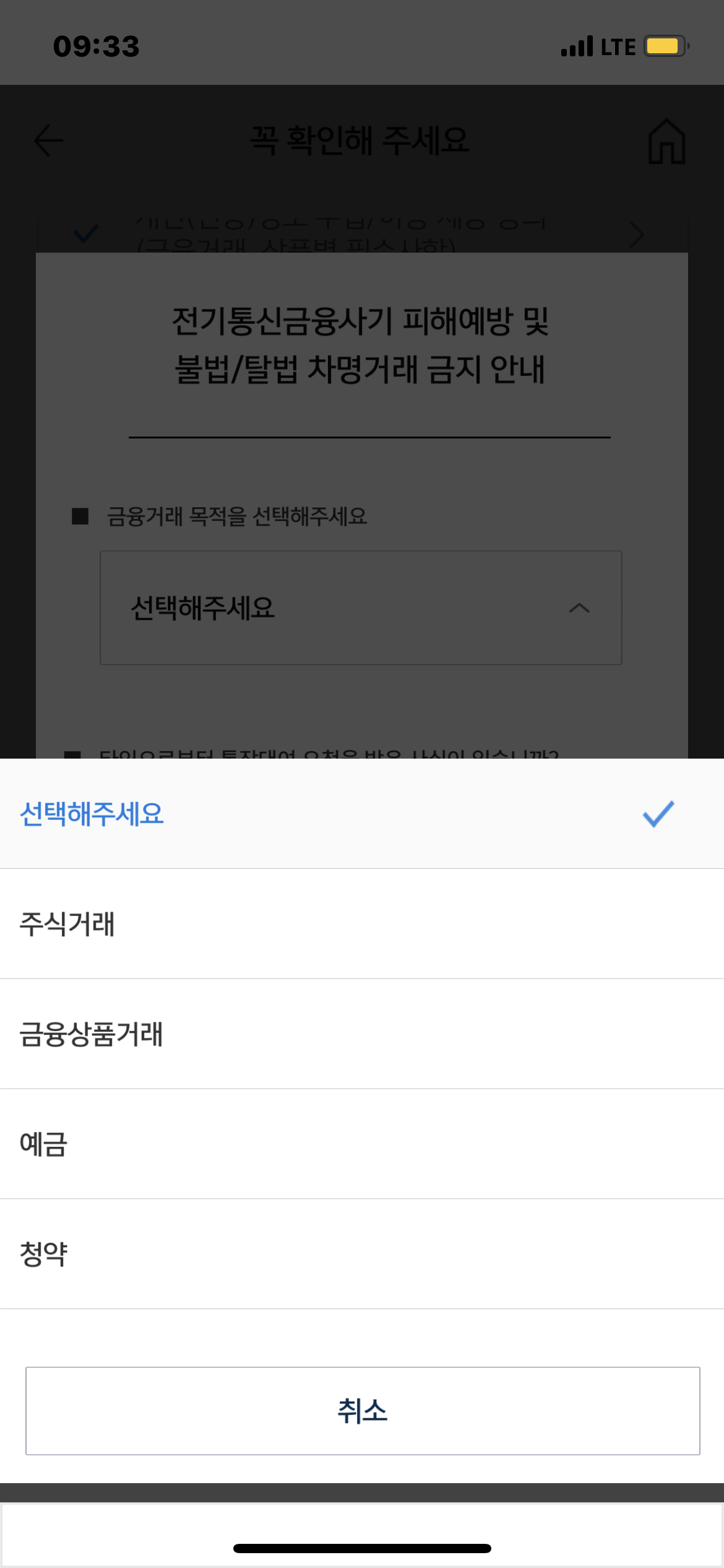 계좌개설 목적 입력