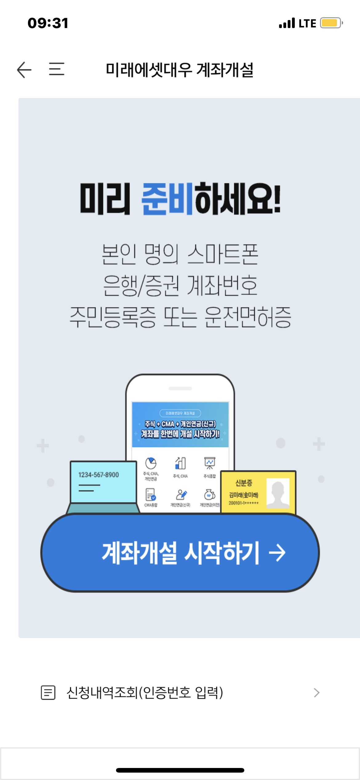 준비물은 스마트폰, 신분증입니다.