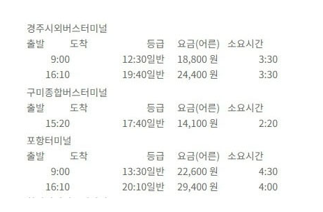 경주시외버스터미널 / 구미종합버스터미널 / 포항터미널