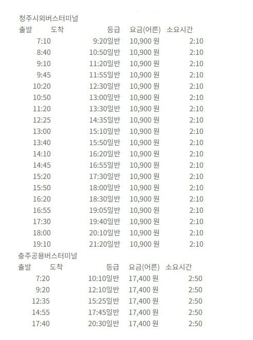 남청주정류소 / 청주시외버스터미널 / 충주공용버스터미널