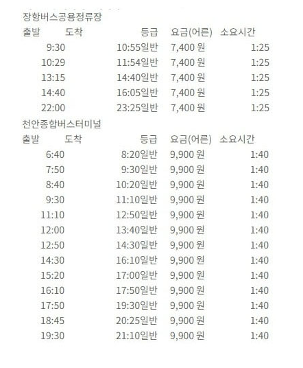 금산시외버스터미널 / 사천시외버스터미널 / 장항버스공용정류장 / 천안종합버스터미널 / 성환버스터미널